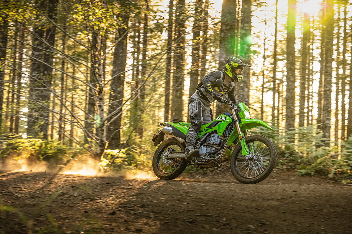 La KLX®300 es una motocicleta deportiva dual, liviana y muy versátil que continúa adelante cuando el camino termina.
